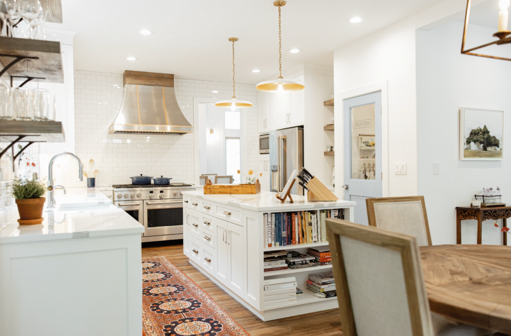 Why It’s a Favorite: What we love most about this kitchen is its balance of charm and practicality. It’s not a sprawling space, but it doesn’t need to be — every design choice adds value either in practicality or charm, from the extra storage in the island to the seamless connection to the dining room. For this family, it means they can cook, host, and sit down together without feeling cut off from one another.